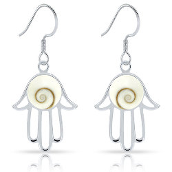 Boucles d'Oreilles Main de Fatma en Argent 925/1000 Oeil de Sainte Lucie