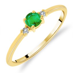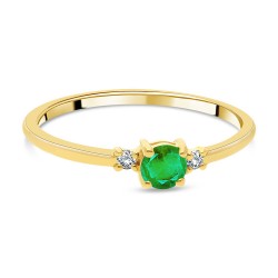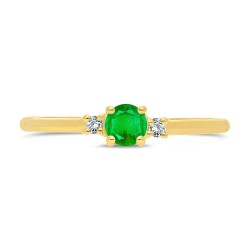 Découvrez cette magnifique Bague Solitaire en Or jaune mettant en valeur un Émeraude taille ronde, accompagné de 2 Diamants blancs étincelants. Le choix idéal pour sublimer votre style en toutes occasions.