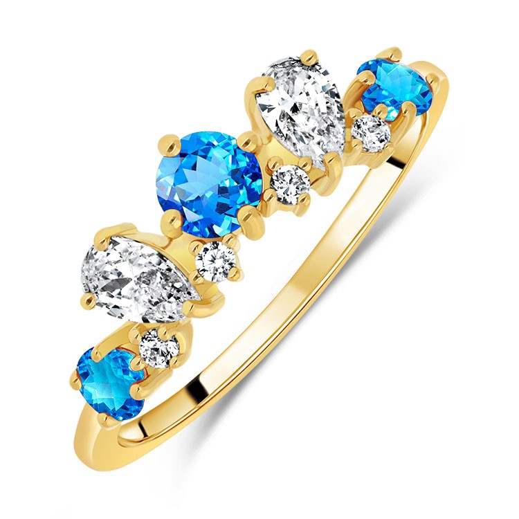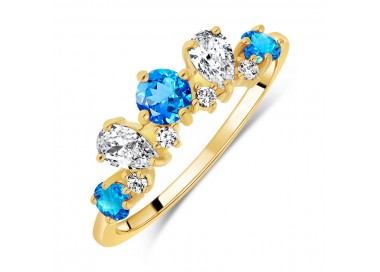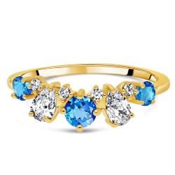 Bague Argent 925/1000 plaqué Or 18 carats sertie Topaze Bleue Suisse Coeur