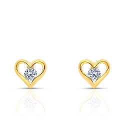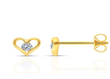 Sublimez votre style avec la grâce de ces Boucles d'Oreilles en Or jaune 375/1000 en forme de Cœur, rehaussées de magnifiques Diamants Blancs taillés en forme Ronde. Léger et discret, ce Bijou d’une grande élégance est le choix idéal pour toutes les occasions.
