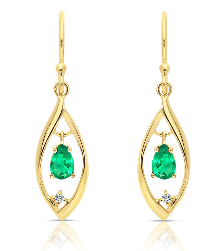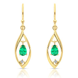 Découvrez ces magnifiques Boucles d’Oreilles en Or jaune ornées d’Émeraudes taillés en forme de Poire et de Diamants Blancs. Le Bijoux idéal pour un usage quotidien ou pour sublimer vos tenues les plus élégantes.