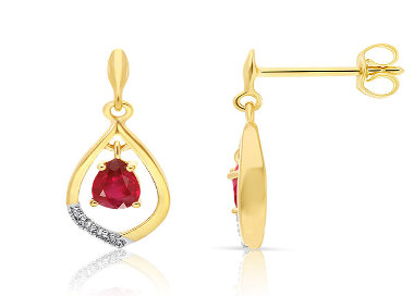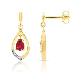 Magnifique paire de Boucles d'Oreilles en Or jaune 375/1000 serties de superbes Rubis naturels taille poire pour un total de 60/100e carats. Un Bijou à associer à vos plus belles tenues. Portées en parure avec le collier assorti elles sublimeront votre féminité.