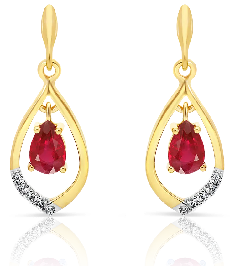 Découvrez la beauté intemporelle de ces Boucles d'Oreilles Pendantes en Or jaune, serties de Rubis naturels en forme de Poire, et incrustés de Pierres d'Oxyde de Zirconium. Parfait pour compléter vos tenues les plus élégantes.