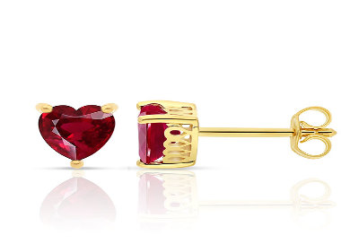 Boucles d'Oreilles en Or 375/1000 Bicolore et Rubis taille poire