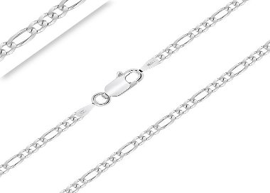 Découvrez notre très belle Chaîne en Argent 925/1000 maille Figaro Alternée de 2.5 mm de largeur. Avec une finition Rhodiée qui sublime son éclat, cette Chaîne saura mettre en valeur vos plus beaux Pendentifs. Que vous soyez une Femme ou un Homme, son design raffiné rehaussera votre style en toutes occasions.