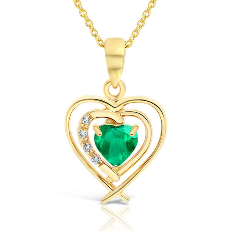 Collier en Or 14K Émeraude taille Coeur et Diamants