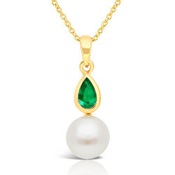 Collier en Or 375/1000 Émeraude taille Coeur et Diamant