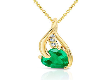 Collier en Or 375/1000 Émeraude taille Coeur et Diamants