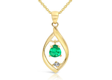 Collier en Or 375/1000 Émeraude taille Coeur et Diamants