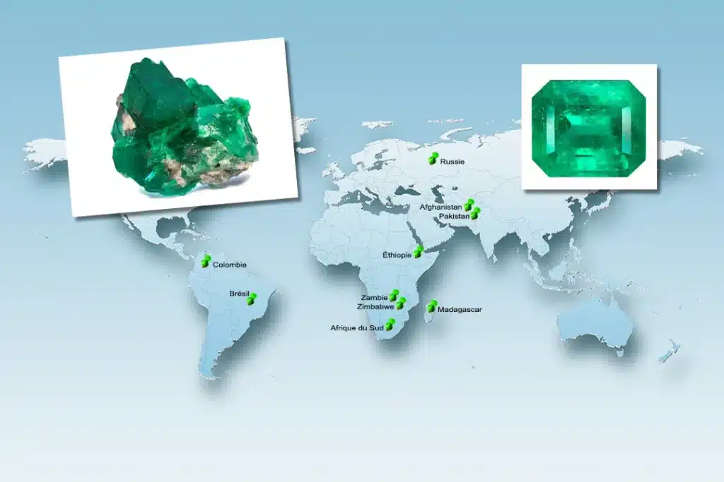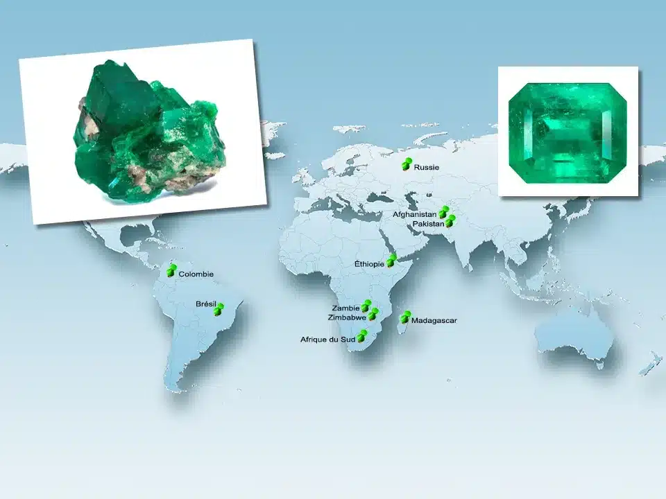 Il existe plusieurs pays dans le monde qui sont connus pour leurs gisements d'émeraudes. Colombie, Brésil, Zimbabwe...
