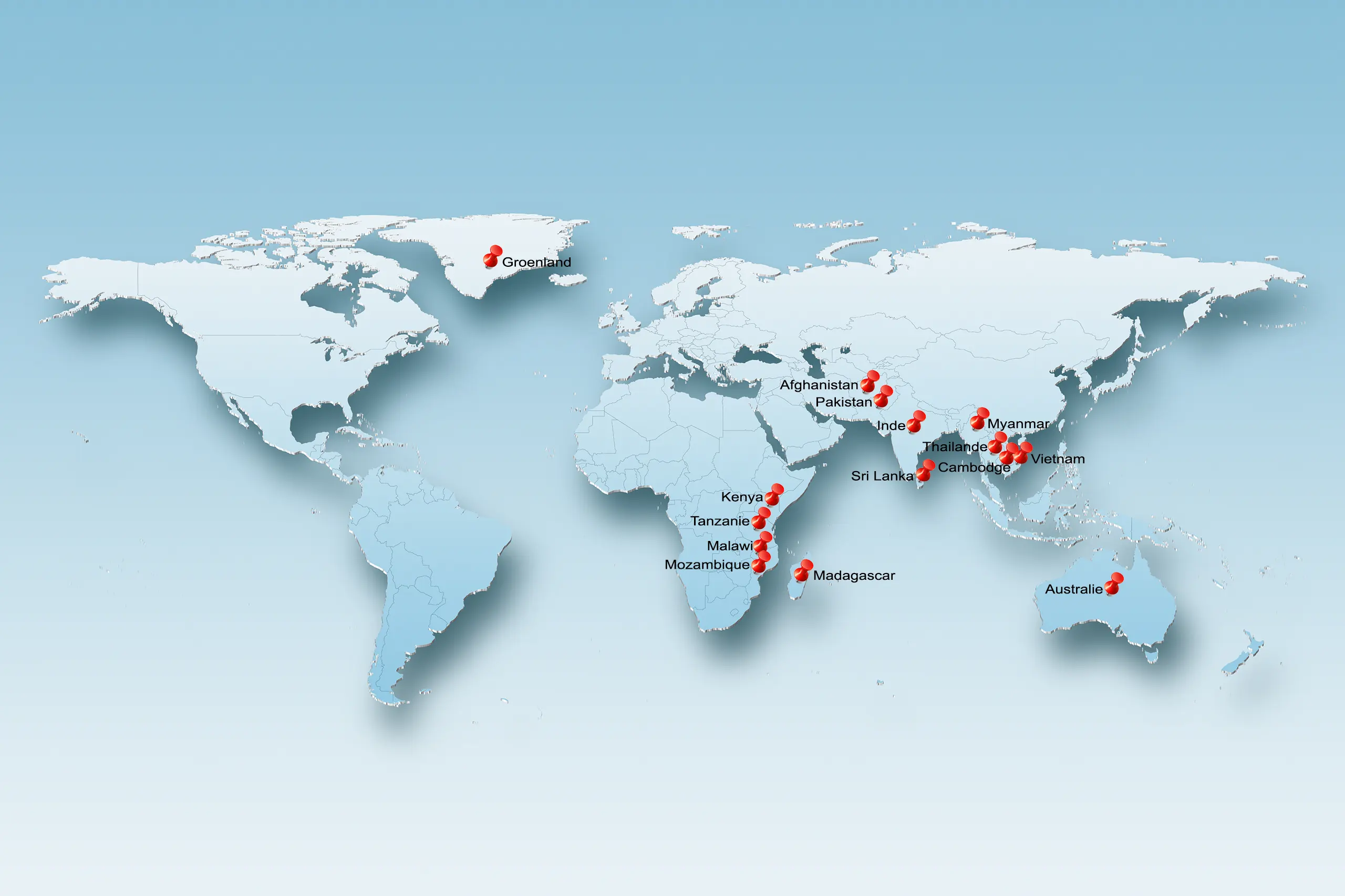 Les gisements de Thaïlande, du Cambodge, du Sri Lanka et du Vietnam