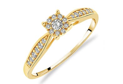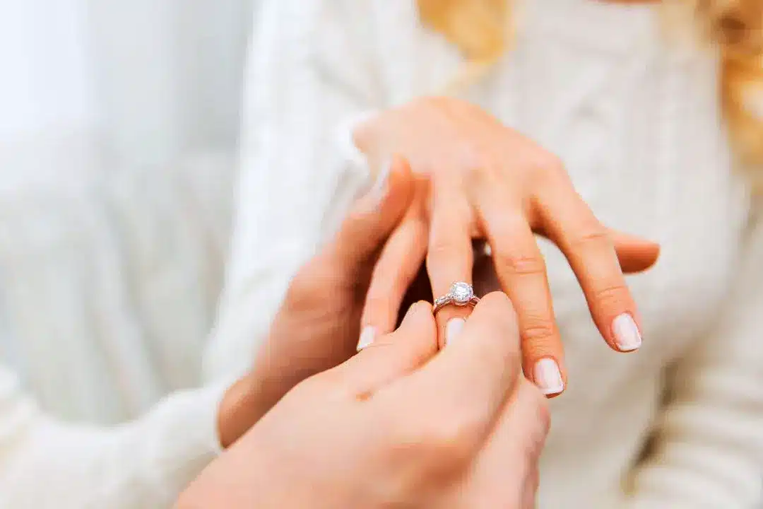 - aux fiançailles (bague surmontée d'un diamant solitaire),
