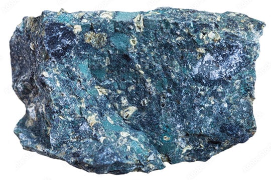 La kimberlite est un type de roche ignée principalement connue pour contenir parfois des diamants. Elle est généralement de couleur bleu-gris à verdâtre et se caractérise par une texture porphyrique, ce qui signifie qu'elle contient de gros cristaux (phénocristaux) encastrés dans une matrice fine.